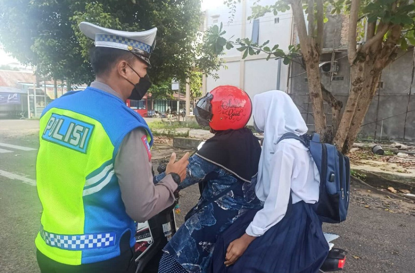 Satlantas Polres Seruyan Beri Teguran Humanis Kepada Pengendara Tanpa Helm