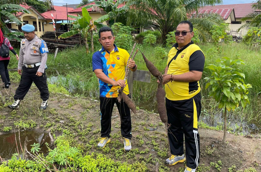Polres Seruyan Lakukan Penanaman Sayuran dan Panen Singkong