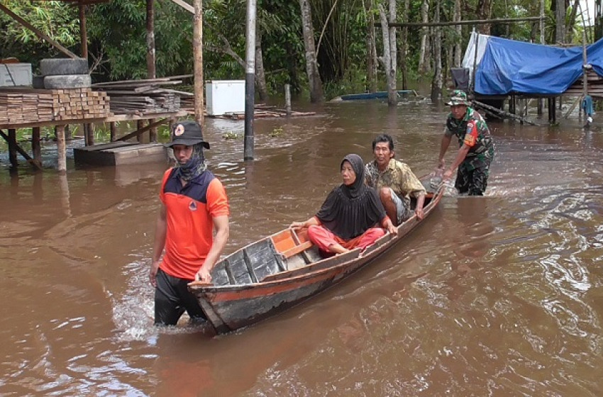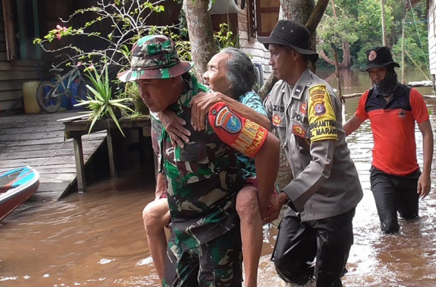 Petugas Evakuasi 3 Lansia Korban Banjir di Palangkaraya