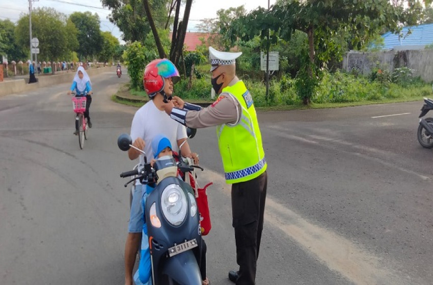 Satlantas Polres Seruyan Berikan Edukasi Pemotor Untuk Meng”Klik” Helm
