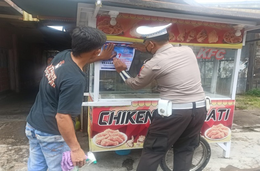 Satlantas Polres Seruyan Bagikan Stiker Himbauan Operasi Zebra Telabang 2022
