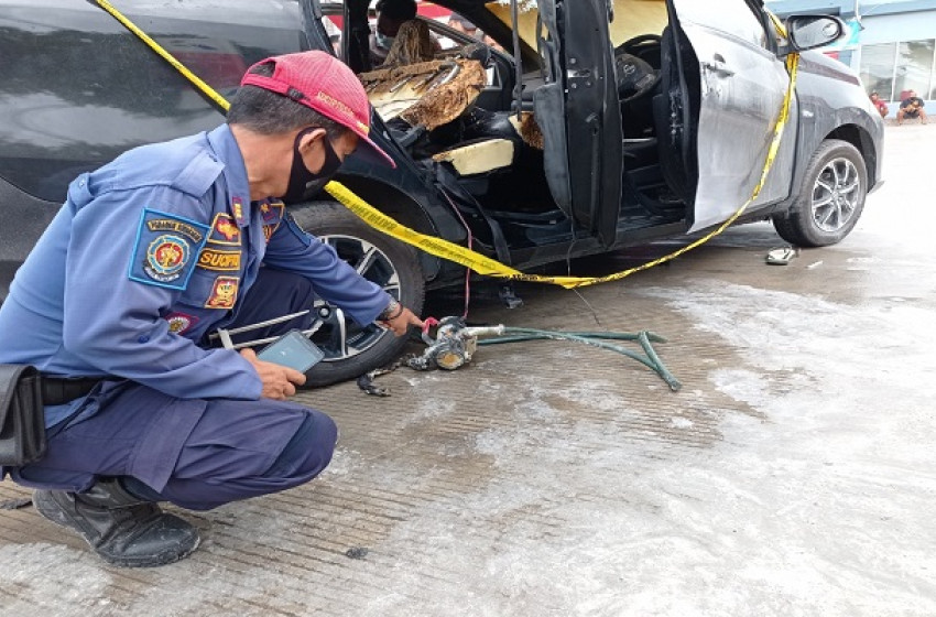 Mobil Bawa Banyak Jerigen Terbakar di SPBU Jalan G. OBos Palangka Raya
