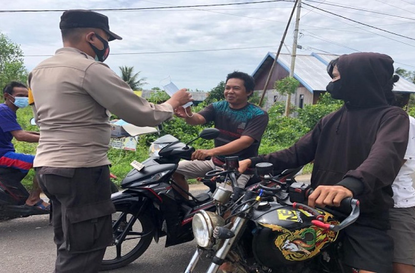 Polsek Seruyan Hilir Ajak Warga Desa Sungai Undang Taat Prokes dan Bagikan Masker