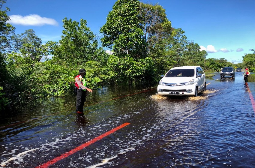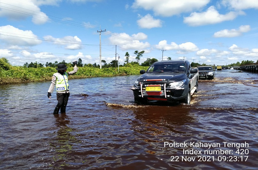Informasi mulai turunnya debit banjir di kedua ruas jalan nasional ini ungkapkan Kepala Bidang Humas Polda Kalteng, Komisaris Besar Kismanto Eko Saputro dalam keterangan tertulis, Senin (22/11/2021).