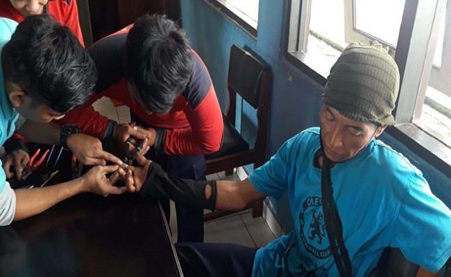 Toyiban (41) hanya pasrah saat jari tengahnya membengkak dan terasa sakit akibat 3 cincin yang terbuat dari bahan stainless steel yang melingkar di tiga jari tangannya tak bisa dilepaskan akibat terlalu kecil ukurannya.