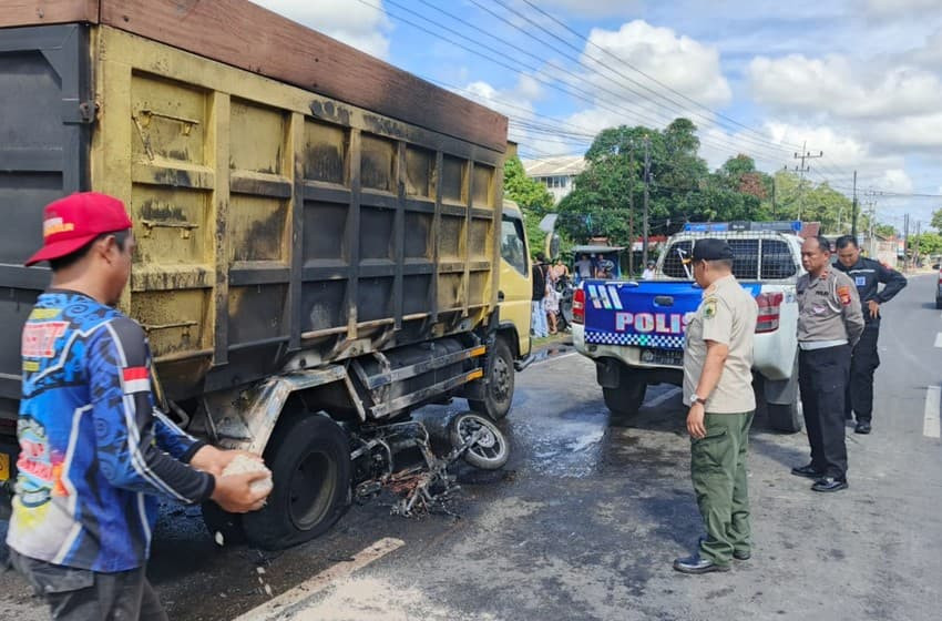 Kontenkalteng.com, Palangka Raya - Kecelakaan lalu lintas ganda yang melibatkan dump truck dan sepeda motor terjadi di Jalan Tjilik Riwut Km 6, Kelurahan Bukit Tunggal, Kecamatan Jekan Raya, Rabu (8/4/2026) pagi. Insiden ini sempat memicu kebakaran pada kendaraan roda dua.