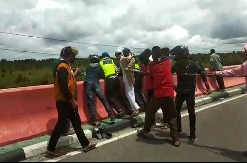 Polisi dan warga nampak membantu korban kecelakaan di jembatan Tumbang Nusa, Kabupaten Pulang Pisau (foto : IST)