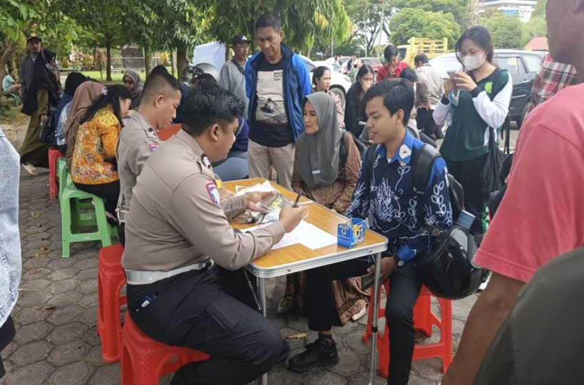 Tim Gabungan dari Satuan Lalu Lintas Polda Kalimantan Tengah (Kalteng), Badan Pendapatan Daerah (Bapenda) Kalteng, dan PT Jasa Raharja menggelar razia kendaraan bermotor di Jalan Yos Sudarso, tepatnya di halaman TVRI Kalteng, Kamis (24/4/2025).