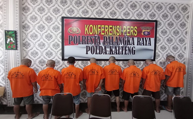 Delapan Terduga Pelaku Pembunuhan Anggota Polda Kalteng Yang ditangkap (dok. Humas Polresta Palangkaraya)