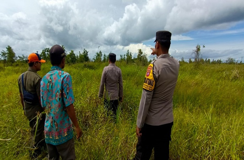 Seruyan - Dipimpin oleh Kapolsubsektor Sei Bakau/SHT beserta Anggota, Staff Kecamatan SHT dan Staff Desa di Wilayah Kecamatan Seruyan Hilir Timur melakujan patroli antisipasi kebakaran hutan dan lahan (Karhutla), Sabtu (7/01/2023).