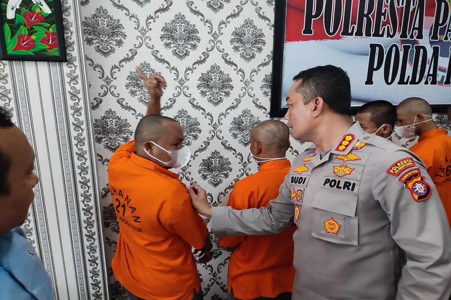 Kapolresta Palangka Raya, pada saat menginterogasi salah seorang pelaku.