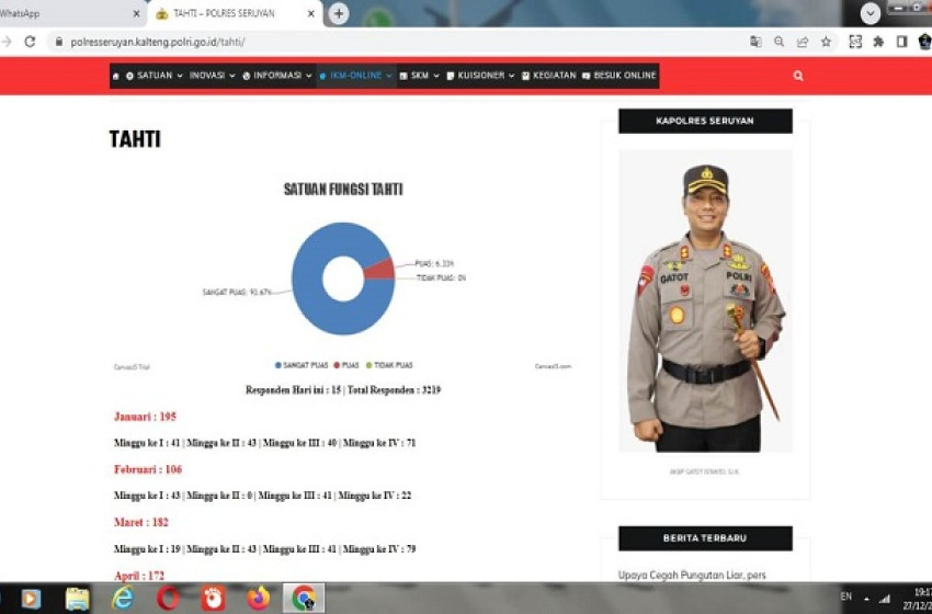 Seruyan – Dalam rangka peningkatan kualitas pelayanan publik yang merupakan salah satu tuntutan dalam mewujudkan Reformasi Birokrasi di lingkungan Polres Seruyan, Sat Tahti Polres Seruyan secara rutin melakukan survey untuk melihat aspek kepuasan masyarakat terhadap kualitas layanan “SerYan SukOn” (Seruyan Layanan Besuk Online) yang telah diberikan.
