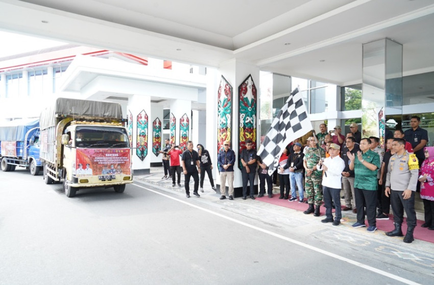 100 Ribu Paket Sembako Bantuan Gubernur Sugianto Sabran Untuk Korban Banjir DAS Barito Diberangkatkan