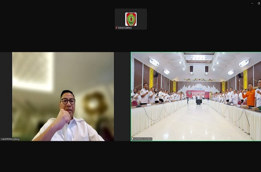 Kepala Bapperida Kalteng Leonard S. Ampung saat menyampaikan sambutan via Zoom Meeting