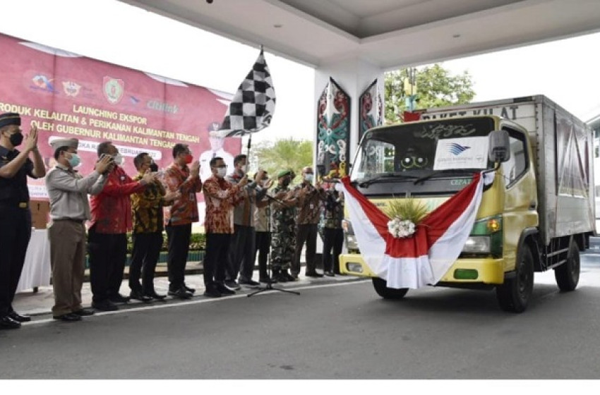 Peluncurkan Ekspor Produk Kelautan dan Perikanan Kalteng, di Halaman Kantor Gubernur Kalteng (dok. Diskominfosantik Kalteng)