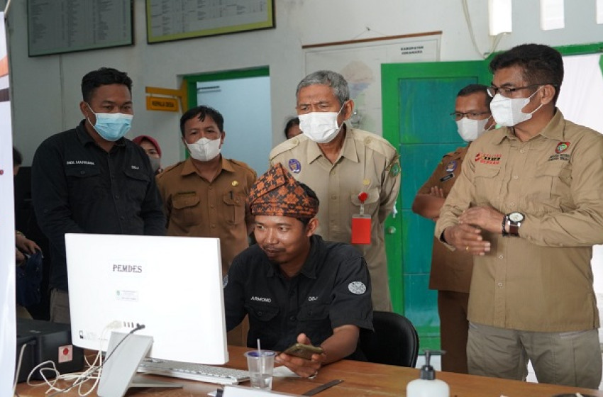 Plt. Kepala Diskominfosantik Prov. Kalteng Agus Siswadi beserta rombongan saat mengunjungi KIM Damar Digital di Kabupaten Sukamara, Senin (28/3/2022) (dok. Diskominfosantik Kalteng)