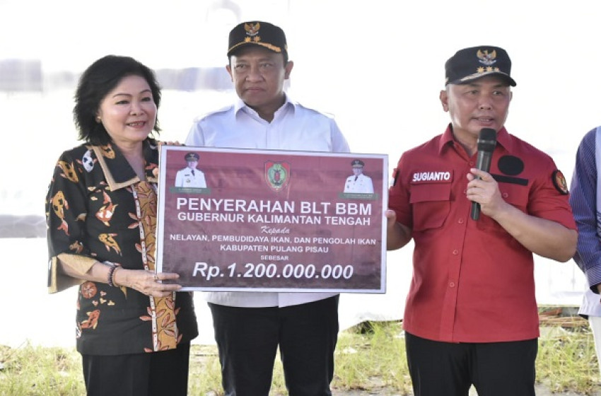 Gubernur Kalteng H.Sugianto Sabran dan Wagub Kalteng H.Edy Pratowo saat menyerahkan BLT BBM ke Bupati Pulpis