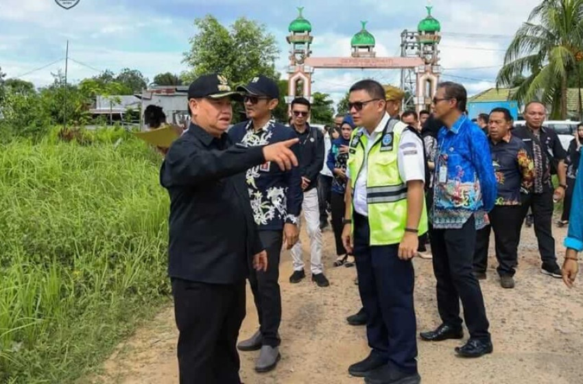 Bupati Kotim Halikinnor bersama pihak bandara dan sejumlah kepala OPD meninjau jalan bandara