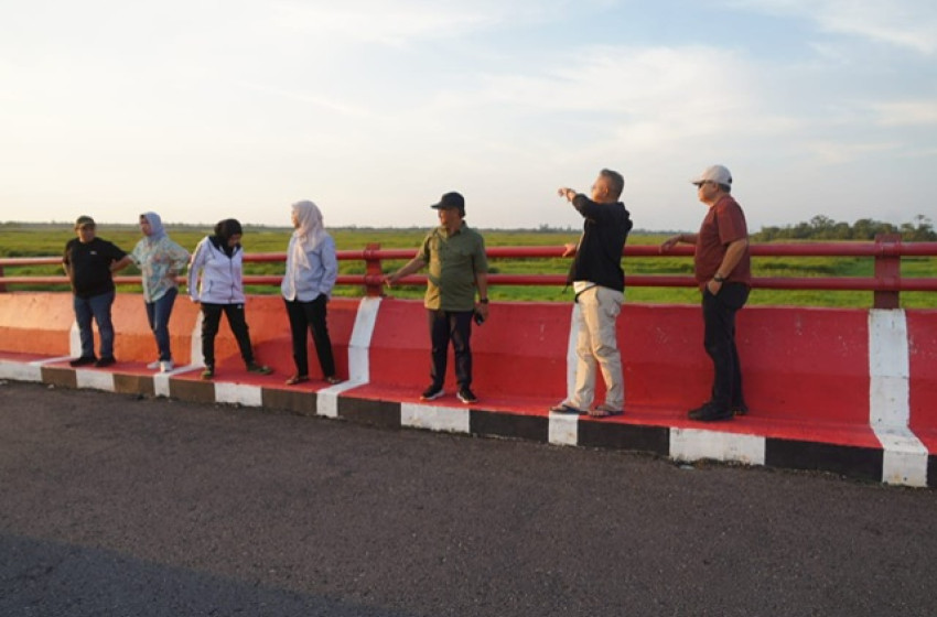 kontenkalteng.com, Sukamara – Asisten Perekonomian dan Pembangunan Sekretariat Daerah Provinsi Kalimantan Tengah (Setda Prov. Kalteng) Herson B. Aden bersama sejumlah Kepala Organisasi Perangkat Daerah (OPD) Prov. Kalteng, melakukan peninjauan terhadap kondisi Jembatan Sei Jelai di Kabupaten Sukamara Sabtu (07/06/2025).