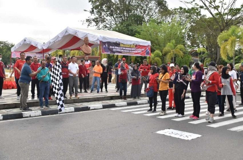 kontenkalteng.com , Palangka Raya - Salah satu rangkaian peringatan Hari Jadi ke-66 Provinsi Kalteng, Pemprov Kalteng melalui Dinas Kesehatan menggelar acara Pergerakan Massa dalam rangka Implementasi Gerakan Masyarakat Hidup Sehat (GERMAS) dengan Deteksi Dini, Pengukuran Kebugaran Jasmani, dan Skrining Kesehatan Jiwa bagi Aparatur Sipil Negara (ASN) di lingkup Pemprov. Kalteng, Jumat (19/5/2023). Acara yang diawali dengan senam bersama ini, dibuka oleh Sekretaris Daerah (Sekda) Kalteng H. Nuryakin di Halaman Kantor Gubernur Kalteng.