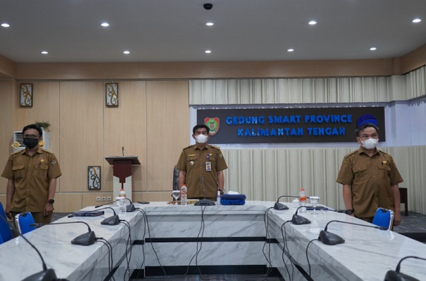 Rakor dihadiri secara virtual dari Gedung Smart Province, Diskominfosantik Provinsi Kalteng, Selasa (15/2/2022).