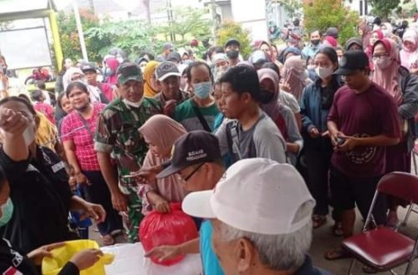 PALANGKARAYA - Operasi pasar yang menyediakan 300 paket sembako murah oleh Pemerintah Kota Palangkaraya, Kalteng untuk masyarakat Kelurahan Panarung, Palangkaraya, Kalteng, Sabtu (24/9/2022) ludes diserbu warga.