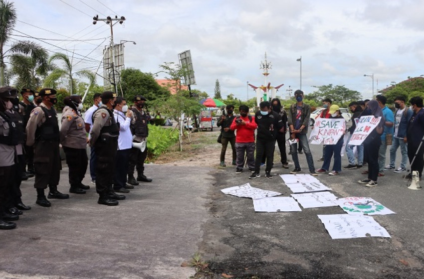 Puluhan personel Polresta Palangka Raya, Polda Kalteng diterjunkan untuk melaksanakan pengamanan aksi damai yang digelar oleh massa yang tergabung dalam Gerakan Solidaritas Untuk Kinipan (Gerstuk), Senin (7/2/2022) Pukul 09.00 WIB.