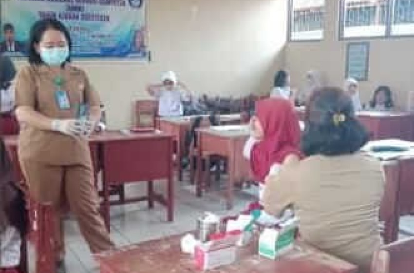 Sejumlah murid di SDN 10 Palangka saat melakukan vaksinasi imunisasi (BIAS) HPV , Selasa (31/10/2023). foto : Ist