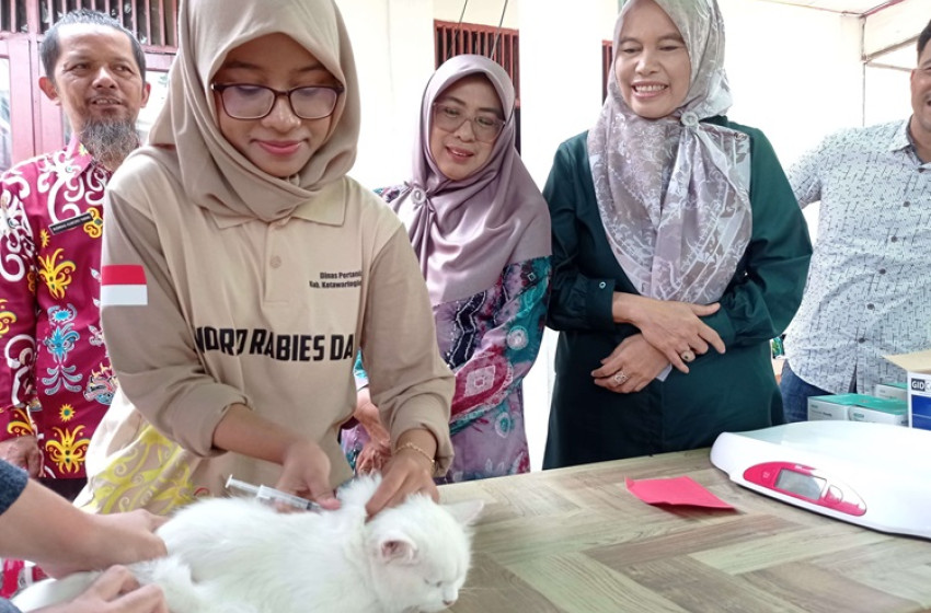kontenkalteng.com , Sampit - Dinas Pertanian Kabupaten Kotawaringin Timur (Kotim), menggelar vaksinasi rabies hewan peliharaan gratis di Puskesmas hewan Ketapang, Jalan HM Arsyad Sampit, Sabtu, (07/10/2023).